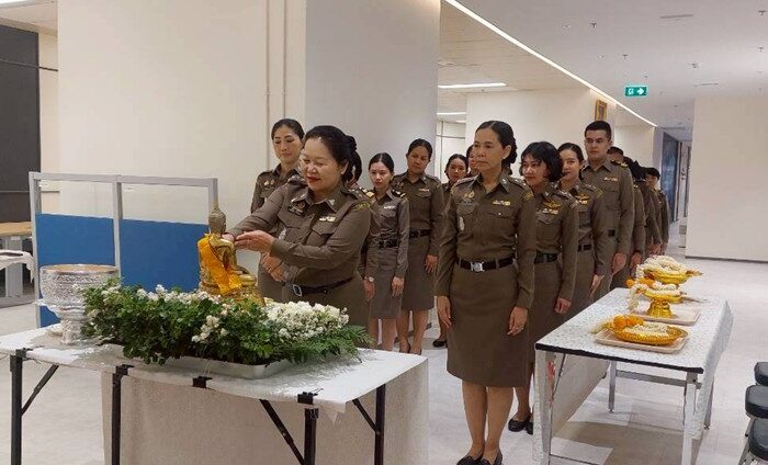 พันตำรวจเอกหญิง พรชนก เพชรกาฬ ผู้กำกับการ 3 กองบังคับการตรวจคนเข้าเมือง 1 พร้อมด้วยข้าราชการตำรวจในสังกัด จัดกิจกรรมสรงน้ำหลวงพ่อเข้าเมืองเนื่องในประเพณีวันสงกรานต์ เพื่อความเป็นสิริมงคล ต้อนรับปีใหม่ไทย